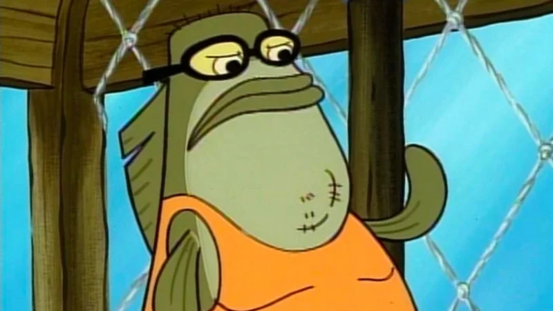 Este peixe é o gênio do mal que Plankton gostaria de ser. Tudo o que esse peixe faz é tirar o dinheiro das pessoas, e ele é bom nisso. Quando Bob Esponja e Patrick têm a ideia de arrecadar um pouco de dinheiro vendendo barras de chocolate, esse babaca é o primeiro a tentar ganhar dinheiro com eles. Primeiro, ele convence a dupla a comprar uma “bolsa para doces” para cada uma de suas barras de chocolate. Em seguida, ele aparece novamente e vende a cada um deles uma “bolsas patenteadas” para carregar as bolsas para doces. E então o que ele faz? Ele vende uma bolsa para carregar a bolsa que carrega as bolsas de doces? Não, ele é bom demais para isso. Ele se enrola em bandagens e finge ser um inválido com “ossos de vidro e pele de papel” para obrigar Bob Esponja e Patrick a comprar mais barras de chocolate (e provavelmente mais bolsas) para pagar suas “despesas médicas” inexistentes. É como se Gavin se hospitalizasse e vendesse camisetas do Nirvana para pagar seus “tratamentos de câncer” experimentais.