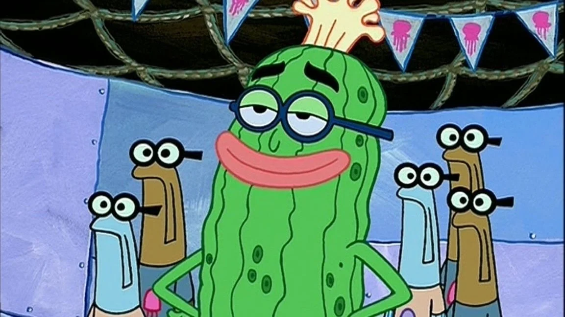 Você pensou que Lula Molusco era pretensioso? Pelo menos ele guarda para si mesmo (e para ser justo, Lula Molusco na verdade está cercado de idiotas). Mas Bacalhau? Ele simplesmente entra na cidade e faz de seus problemas o problema de todos também. Ele é um verdadeiro esnobe de fast food. Em sua primeira aparição, ele entra no Siri Cascudo com uma atitude azeda e passa a fazer um pedido usando palavras e gírias desnecessárias. O que isso significa? Basicamente, o pedido é um hambúrguer de siri duplo com batatas fritas e todos os ingredientes. Mas ele não podia simplesmente dizer isso, podia? Ele é o equivalente a um cara chamado Gavin que diz: “Ah, isso é uma camisa do Nirvana? Cite três músicas de Bleach”. Bem, Gavin, só porque as pessoas não conhecem cada corte profundo de sua banda favorita não significa que eles não possam gostar dessa banda. Mas Bacalhau é pior que nosso amigo Gavin. Você sabe por quê? Porque ele pede picles em seu hambúrguer e os esconde debaixo da língua para poder ganhar refeições grátis do Siri Cascudo. Normalmente, eu ficaria tipo “foda-se, fique com o Sr. Siriguejo”, mas ele não está machucando o Sr. Siriguejo, está? Não, ele está machucando Bob Esponja, o único cara na Fenda do Bikini que não tem nada de babaquice no corpo. Bacalhau leva Bob Esponja a pensar que ele continua esquecendo os picles e isso quase faz a pobre esponja ter um colapso mental. Você tem que ter sérios problemas se acha legal ser malvado com Bob Esponja.